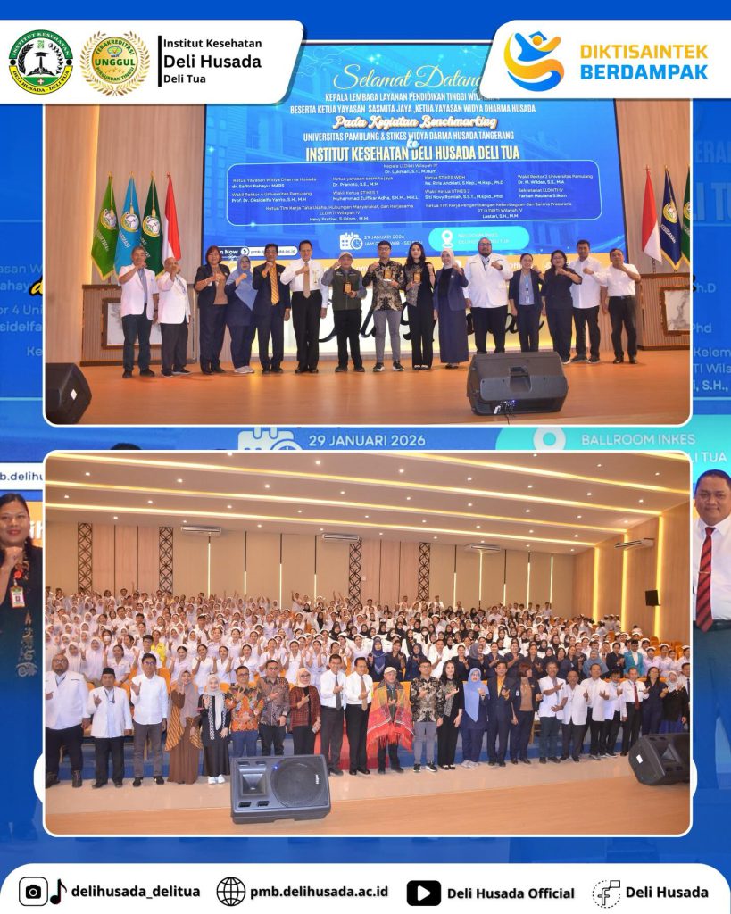 DELI SERDANG – Institut Kesehatan (Inkes) Deli Husada Deli Tua menerima kunjungan benchmarking dari Universitas Pamulang serta STIKes Widya Darma Husada Tangerang. Kunjungan tersebut turut didampingi Kepala Lembaga Layanan Pendidikan Tinggi (LLDIKTI) Wilayah IV Tangerang dan Banten dan berlangsung di Ballroom Inkes Deli Husada Deli Tua. Kegiatan ini menjadi bagian dari upaya penguatan jejaring antarperguruan