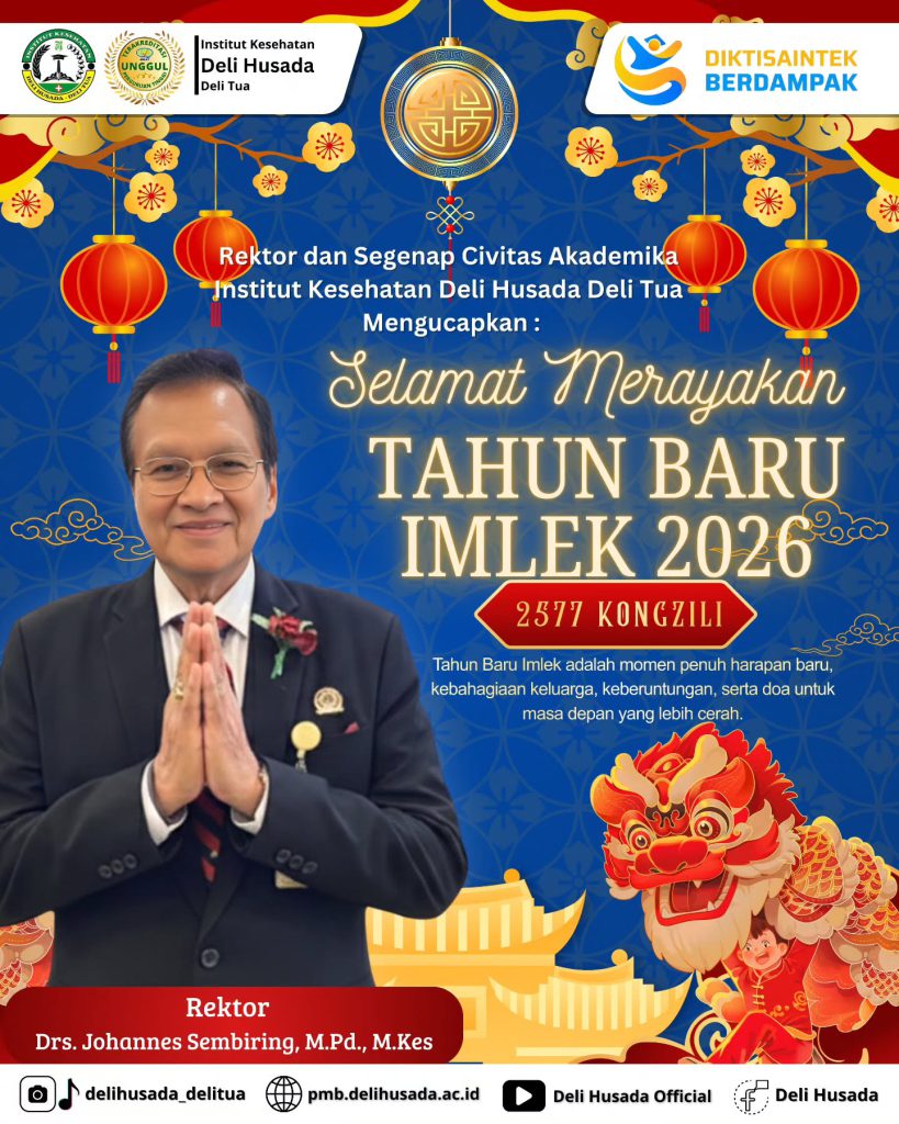 Rektor dan seluruh Civitas Akademika Institut Kesehatan Deli Husada Deli Tua mengucapkan Selamat Tahun Baru Imlek 2026 / 2577 Kongzili kepada seluruh keluarga besar Deli Husada dan masyarakat luas. Tahun Baru Imlek selalu menjadi momen spesial yang penuh dengan harapan, kebahagiaan, dan semangat baru. Semoga tahun yang baru ini membawa keberkahan, kesehatan, dan kesuksesan bagi